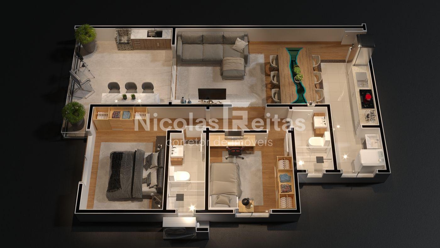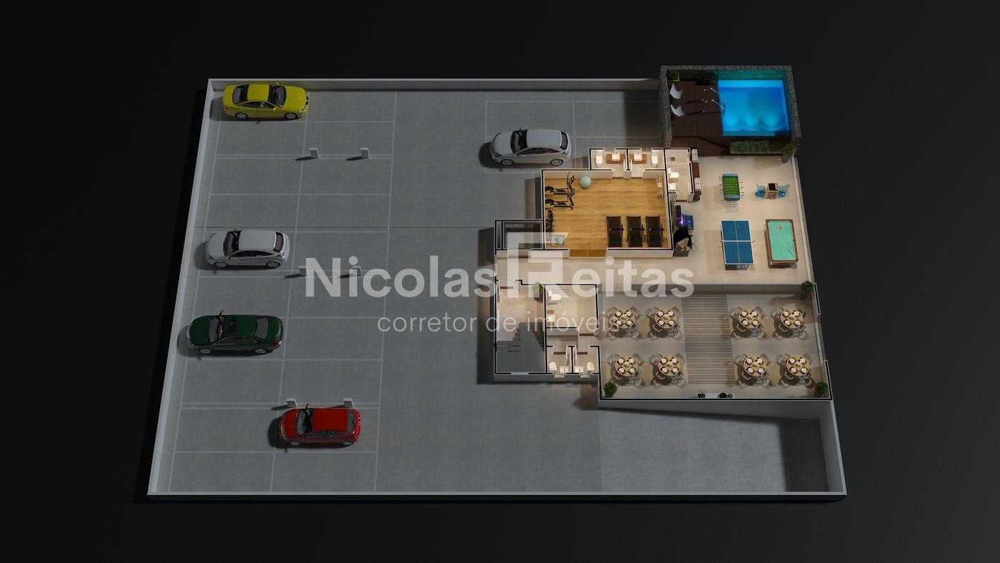 Com salão de festas, salão de jogos, academia equipada, piscina coletiva com deck e elevador.