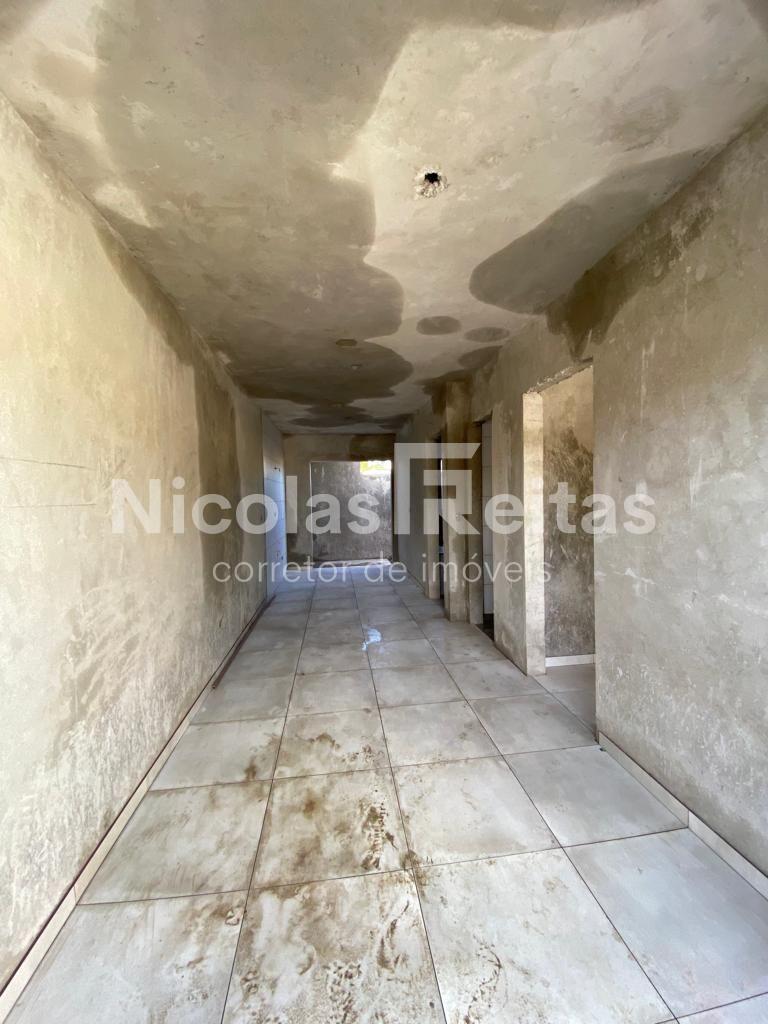 2 quartos, ambiente integrado de estar/ jantar e cozinha, banheiro social, área de serviço. 1 vaga descoberta.